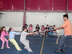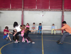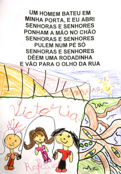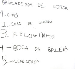 Desenvolvemos, então, um projeto multidisciplinar que abarcou não apenas a linguagem corporal desenvolvida nas aulas de Educação Física, mas outras linguagens como a plástica e a gráfica. Este projeto se estendeu, então, para além das aulas do professor Leonardo e ampliou-se para as atividades pedagógicas, artísticas e de recreação, por meio da elaboração de listagem das brincadeiras realizadas em quadra, atividades plásticas com base em obras que retratavam crianças pulando corda, registros escritos de regras e pontuação, além de muitas outras vinculadas a este tema que é tão rico e próximo ao universo das crianças.